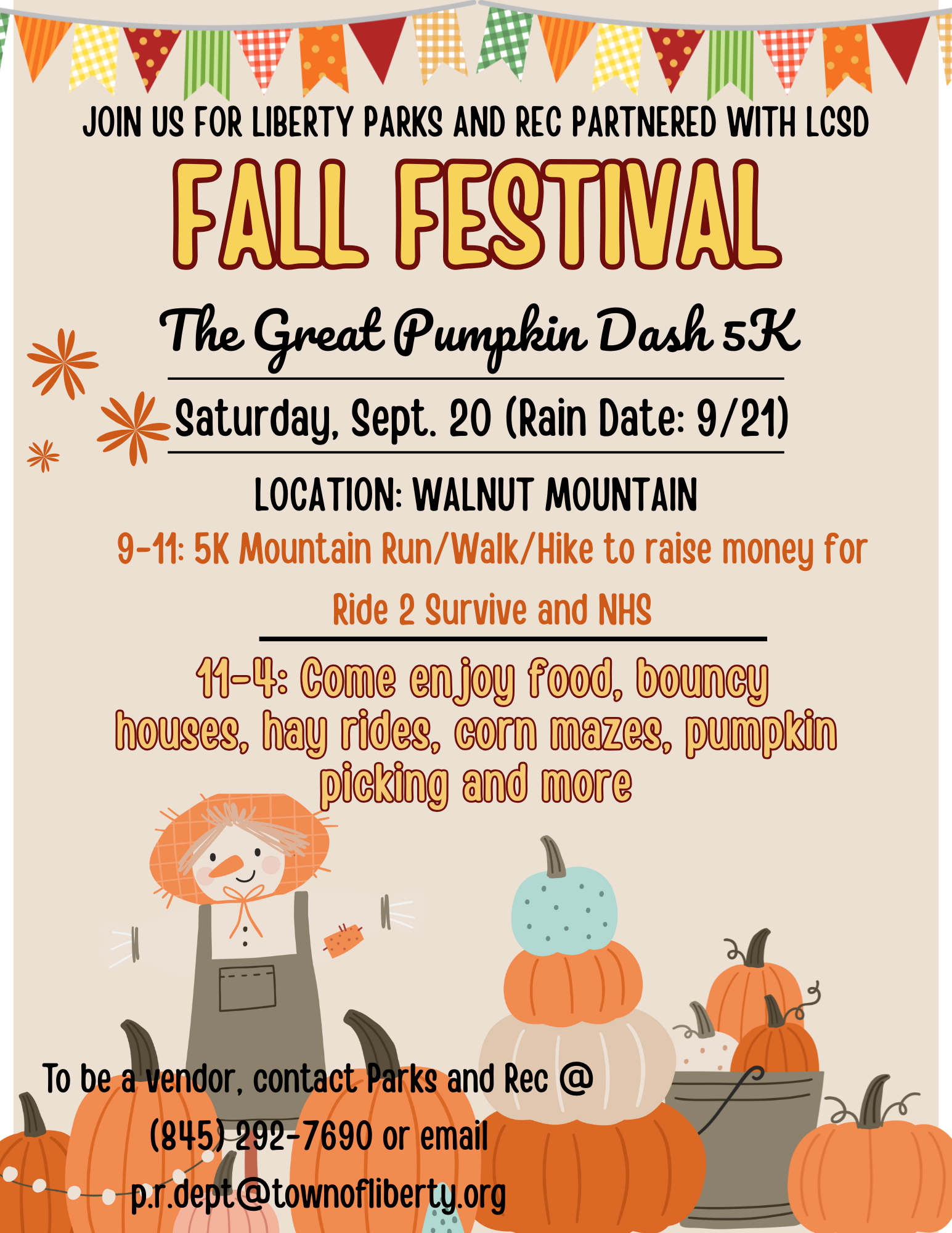 Fall Festival – The Great Pumpkin Dash Saturday Sept. 20